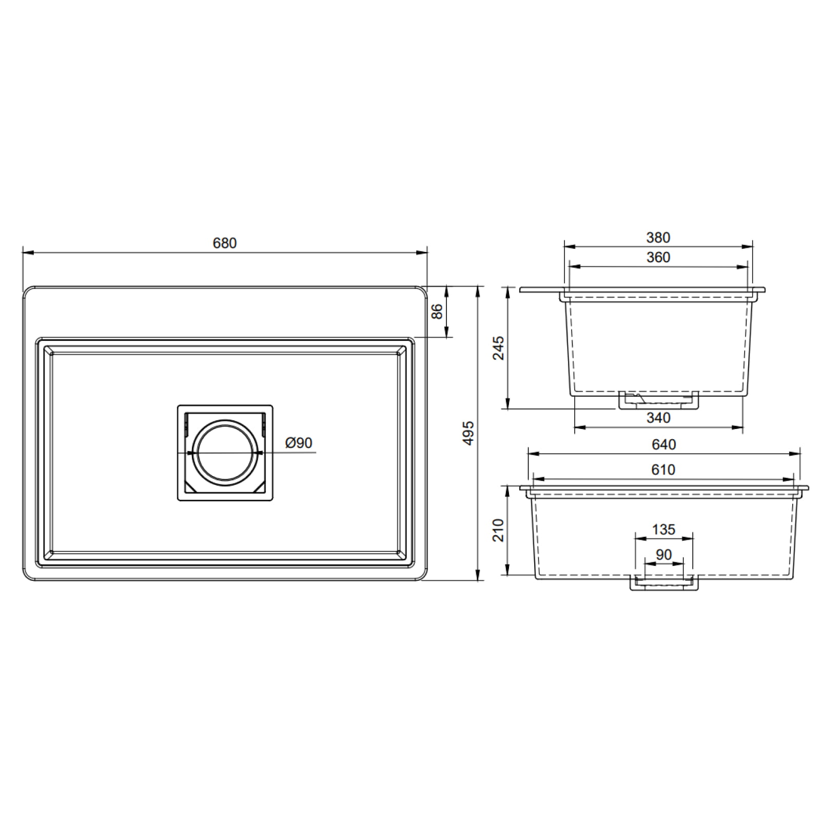 ✅ A mosogató mérete: 680 x 495 mm
